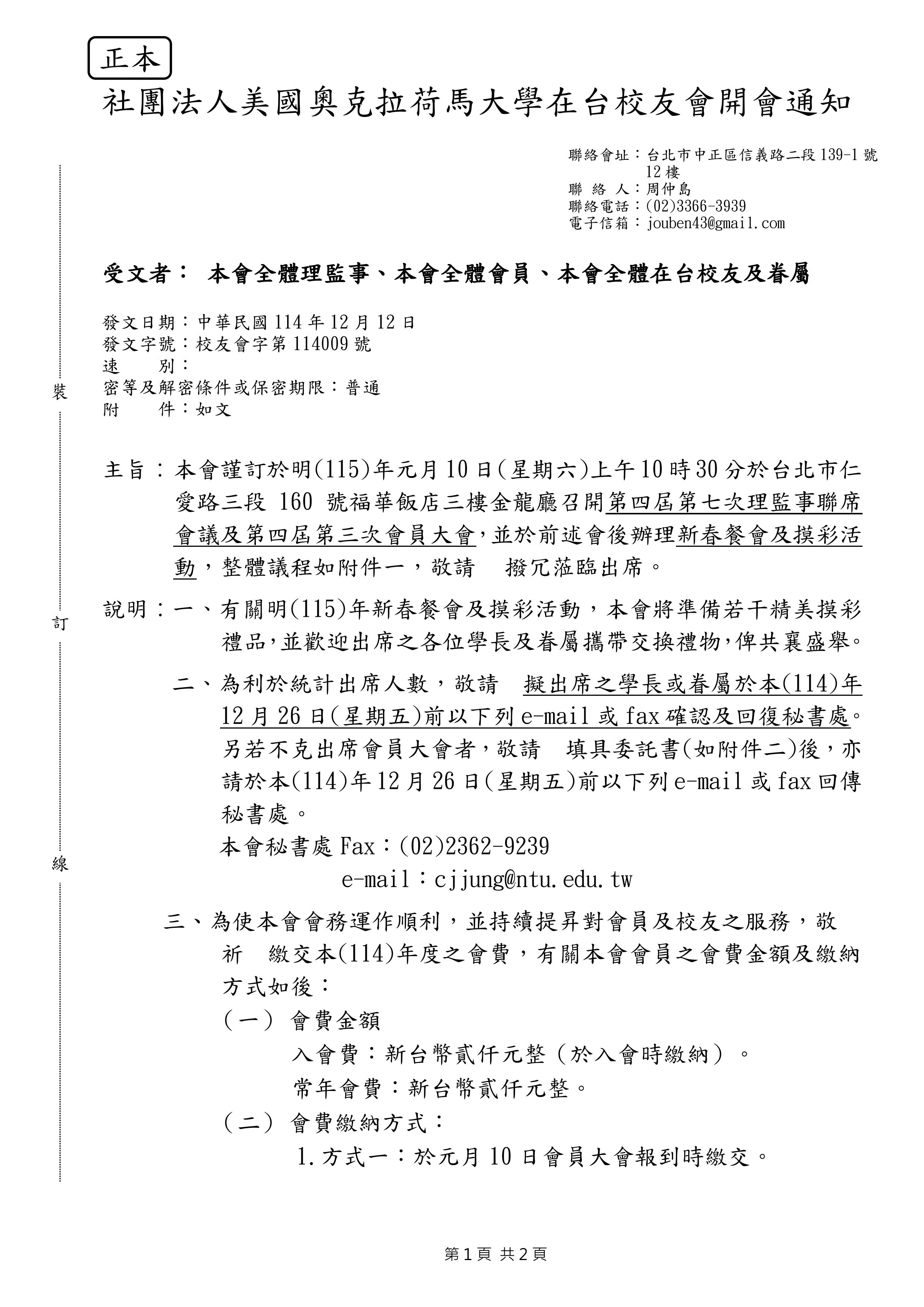 第四屆第七次理監事聯席會議及第四屆第三次會員大會開會通知